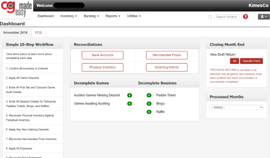 From the web application of CG Made Easy you will see your current month's Dashboard with the POS tab that is now enabled.